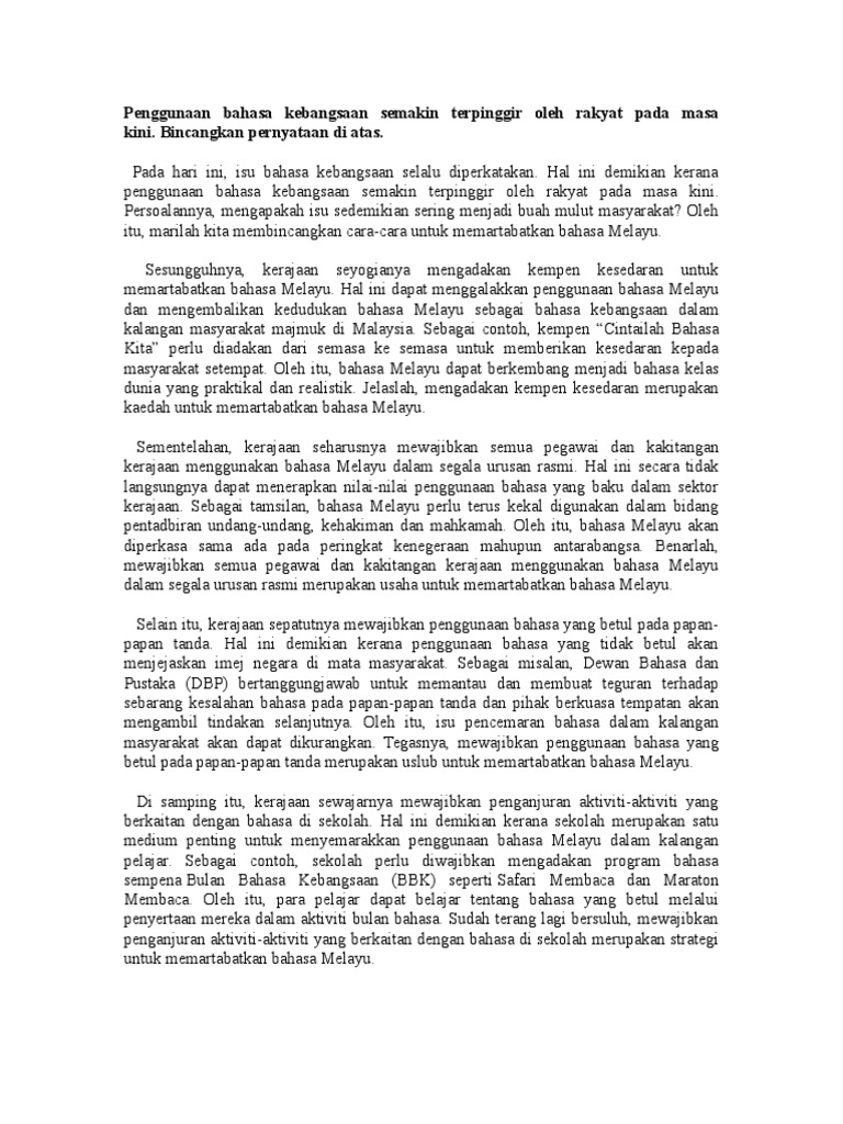 Penggunaan Bahasa Kebangsaan Semakin Terpinggir Ol Pdf